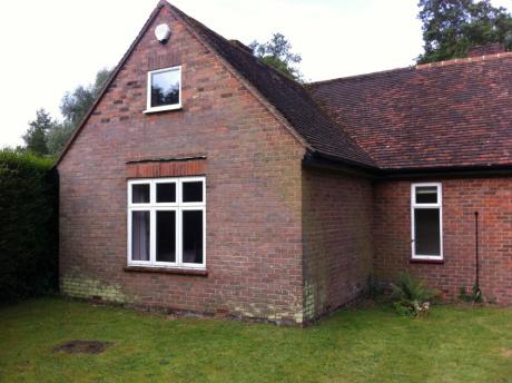 Here the client wanted to blend the brick bungalow with the main house. A colour matched masonry paint was applied directly onto the brickwork and changing the colour of the white upvc windows worked incredibly well
